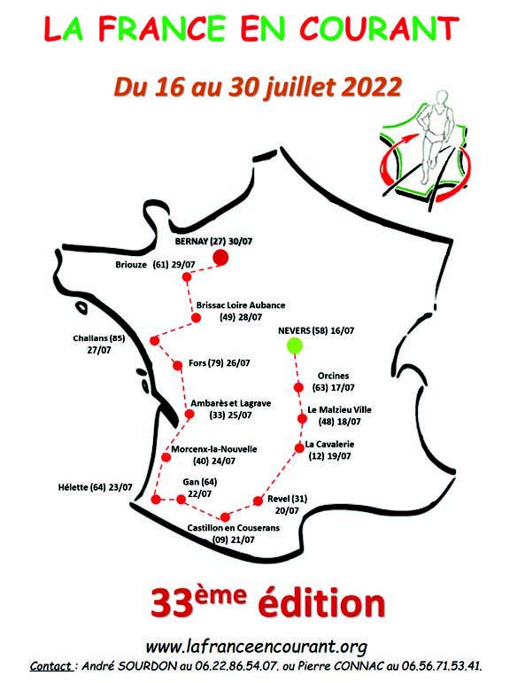 Après un départ de Nevers, les coureurs profiteront de la première étape à Orcines, (ville de cœur de Jean Paquet, ancien président de la Confédération nationale de la Boulangerie Pâtisserie et de l’APCM) pour aller se recueillir sur sa tombe en se souvenant qu’il fut le président de la Confédération qui a soutenu le projet et la création d’un tour de France en courant. Pour rappel, c’est lui-même qui est intervenu auprès des collectivités territoriales en charge des routes du Puy-de-Dôme, pour permettre aux coureurs d’accéder à ce sommet mythique auvergnat.