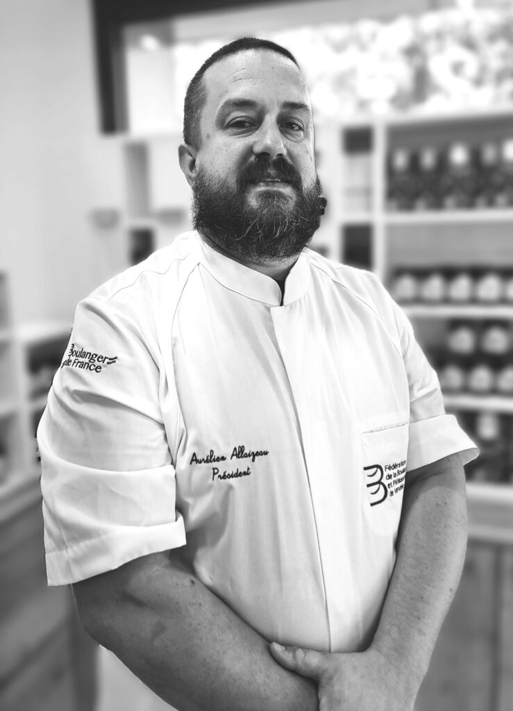 Aurélien ALLAIZEAU est boulanger à Les Sables d’Olonne en Vendée (85), Président de la Fédération de la Boulangerie-Pâtisserie de la régjon Pays de la Loire, Président de Fédération de la Boulangerie-Pâtisserie de la Vendée, Vice-Président de la Commission de la Communication, de la Promotion et de l’Information.